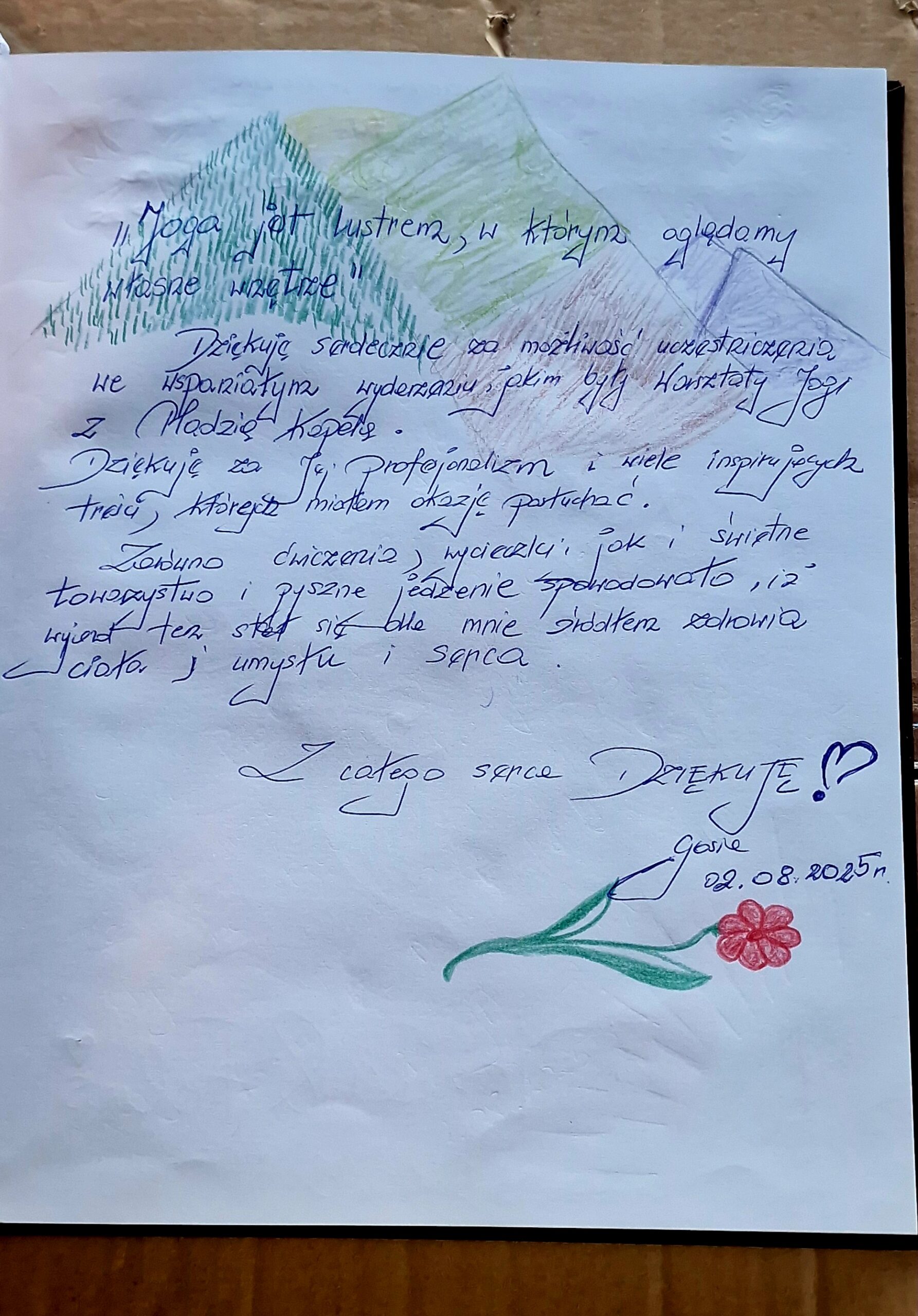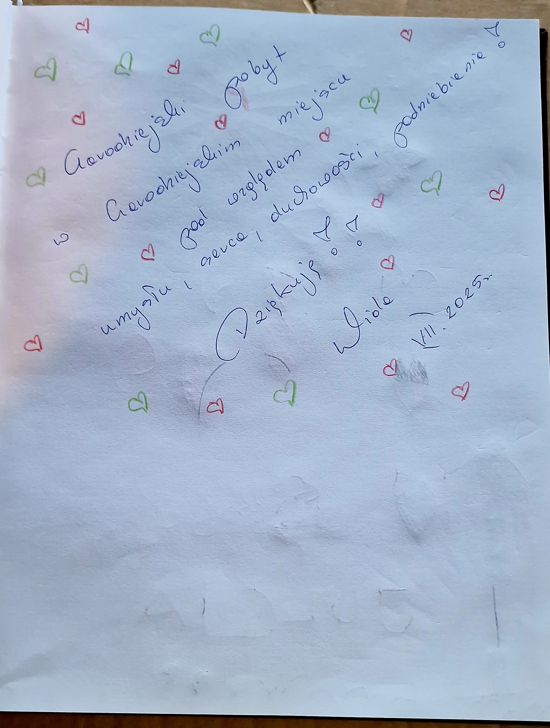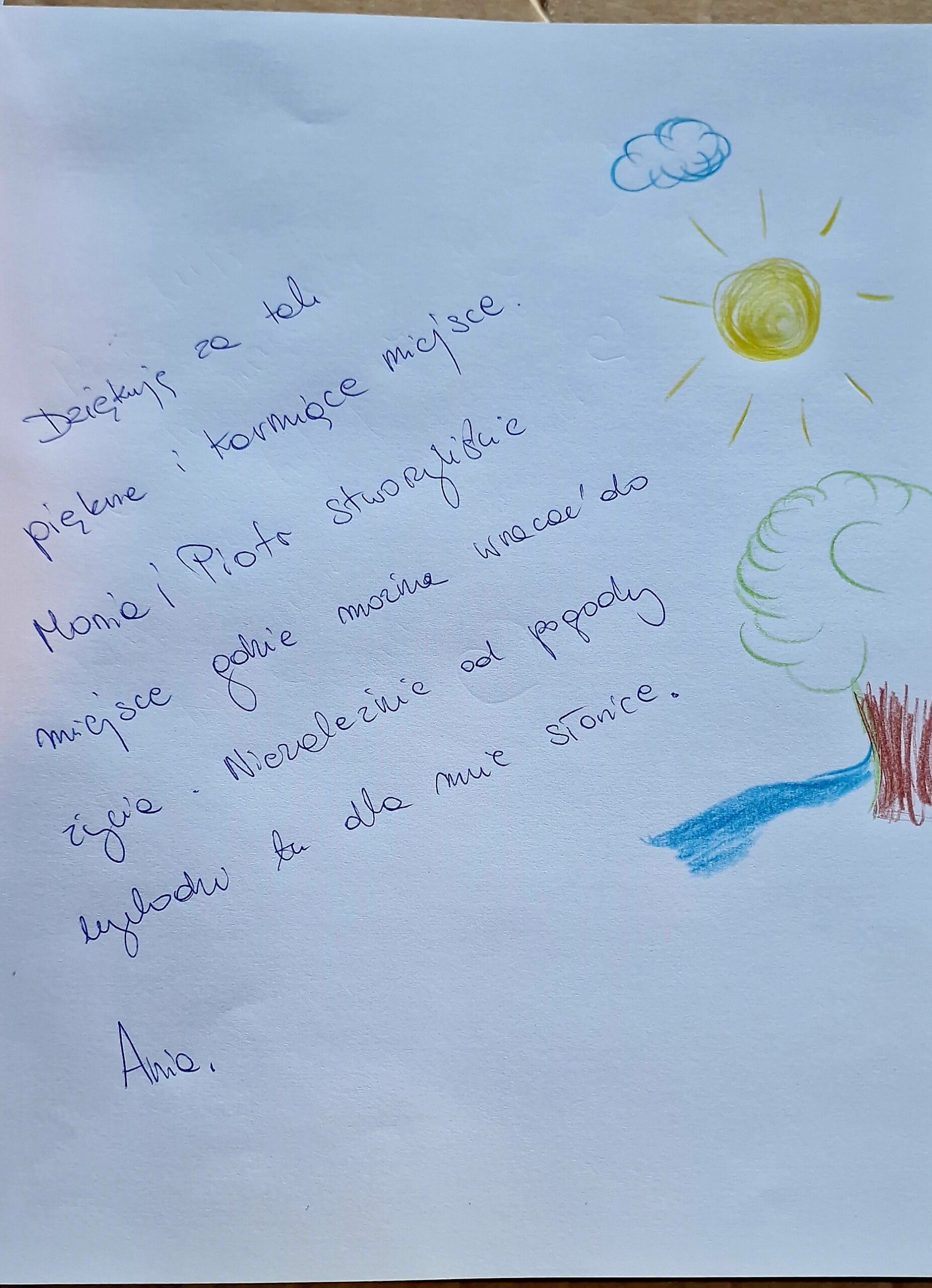 Dziękuję, że przyjeżdżacie do nas, że wracacie z uśmiechem. A kiedy wyjeżdżacie- widzimy w Was więcej światła, więcej spokoju, więcej życia.